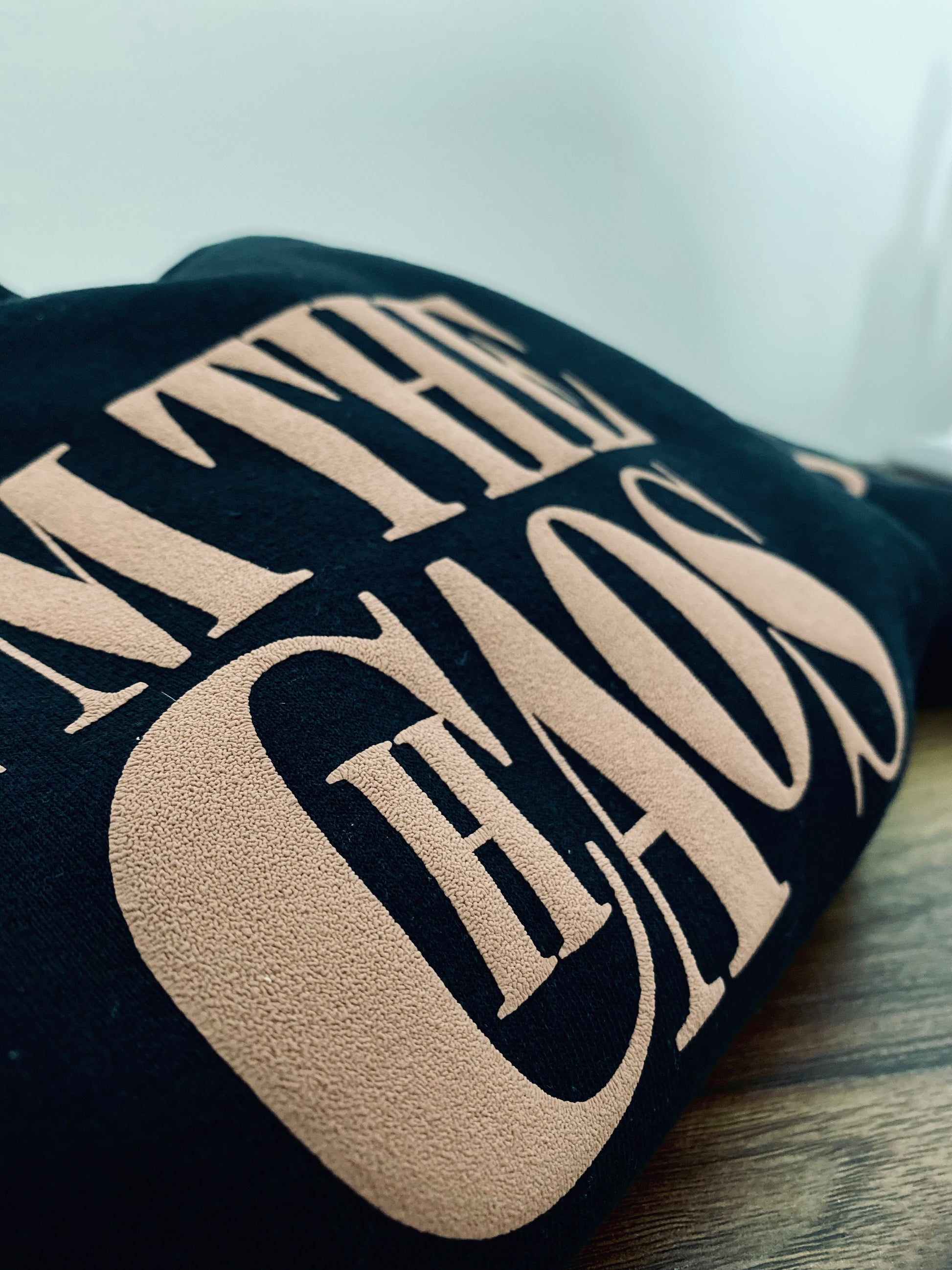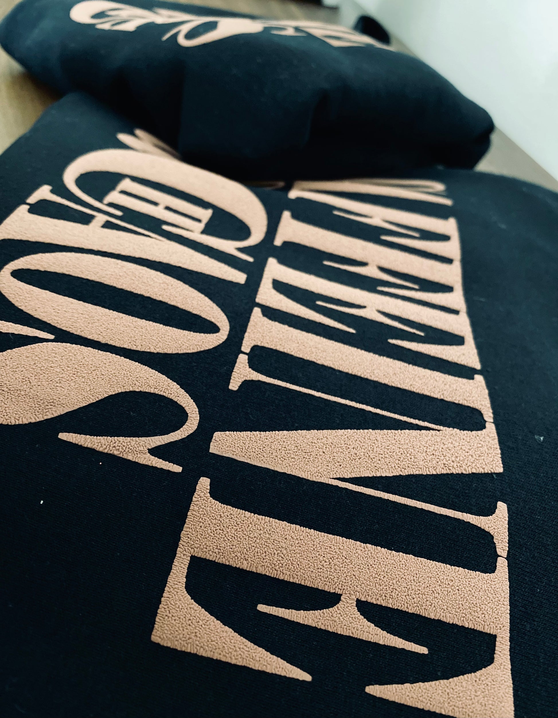 Black Sweatshirt with Mauve Color Puff Vinyl Lettering